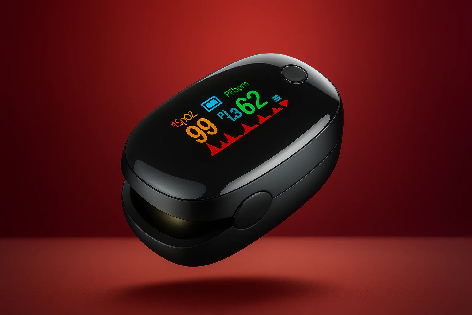 BloodVitals misst SpO₂ (Blutsauerstoffsättigung), Pulsfrequenz (PR) und Perfusionsindex (PI%). Es misst nicht Blutdruck, Temperatur oder EKG.